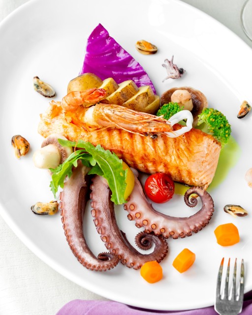 Широкий выбор блюд из рыбы и морепродуктов
